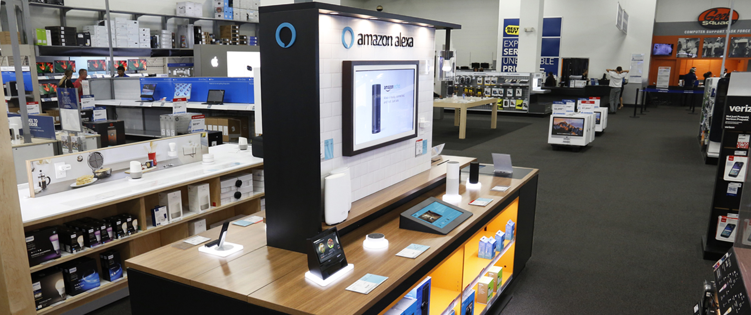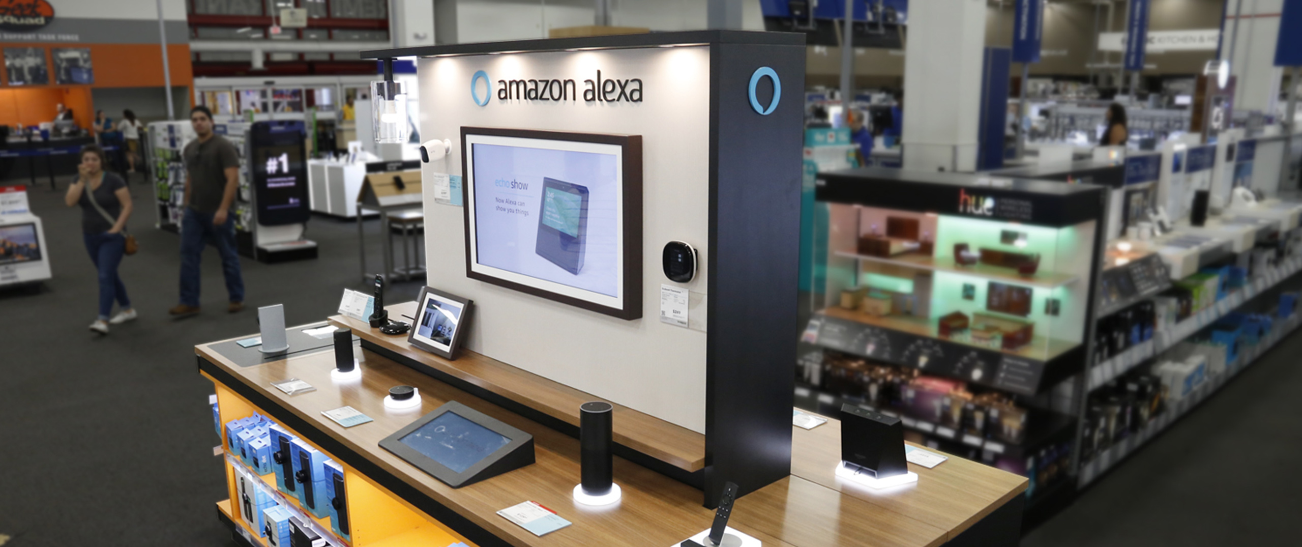 The display creates opportunities for product education by allowing shoppers to learn how the different Alexa products interact with one another and third-party products.