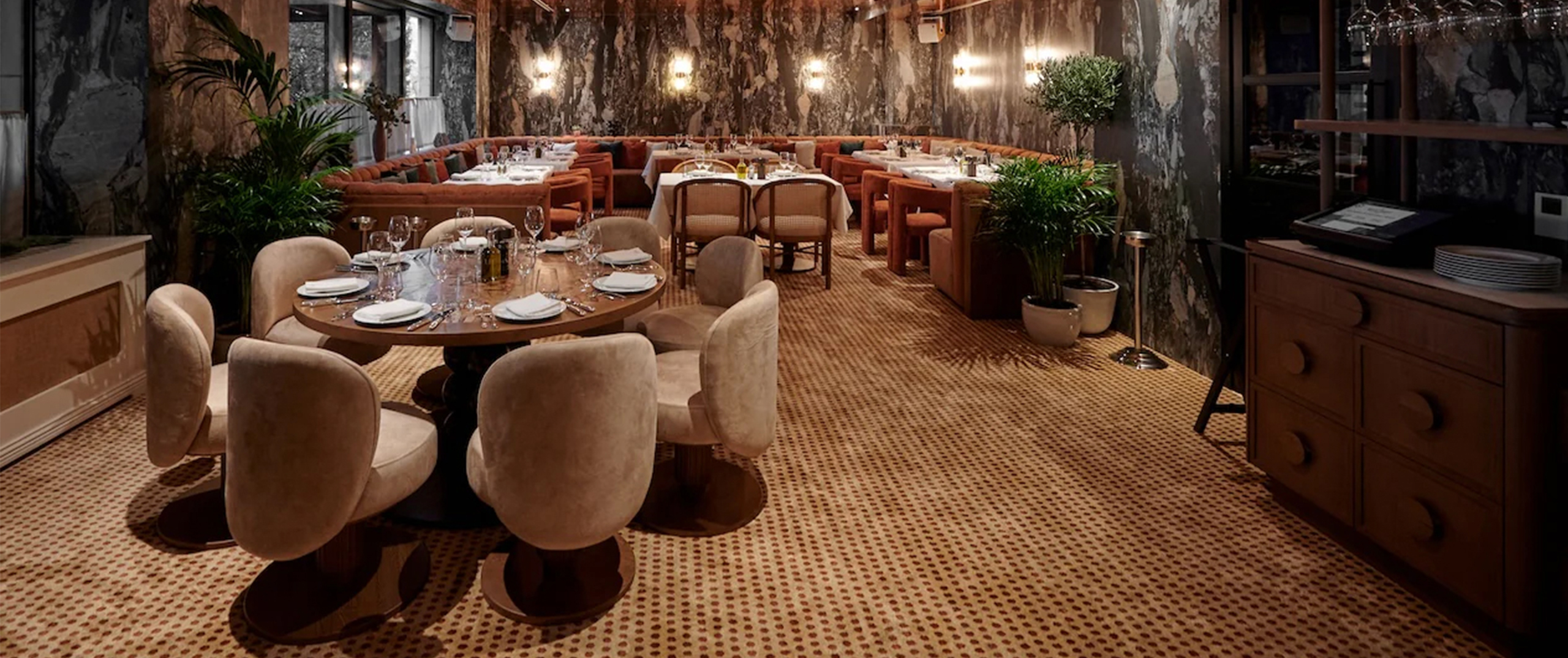 Outform elevated a once unremarkable venue in Brussels into a refined dining and entertainment destination with bold character and timeless elegance. Completed in 2022, the project features marble walls, mirrored surfaces, and bespoke furnishings that create a warm, cocoon-like atmosphere.