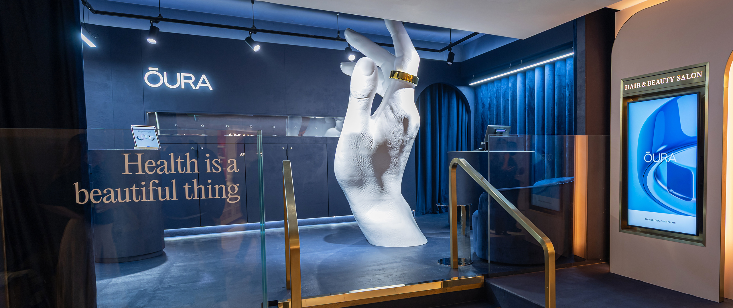 The launch of the OURA Ring 4 Ceramic Collection called for a retail experience that could match the product’s ambition: expressive, elevated, and unmistakably premium. Outform answered with a bespoke activation inside Harrods, transforming a fifth-floor footprint into a sculptural, story-driven environment that redefined how wellness is presented in luxury retail.