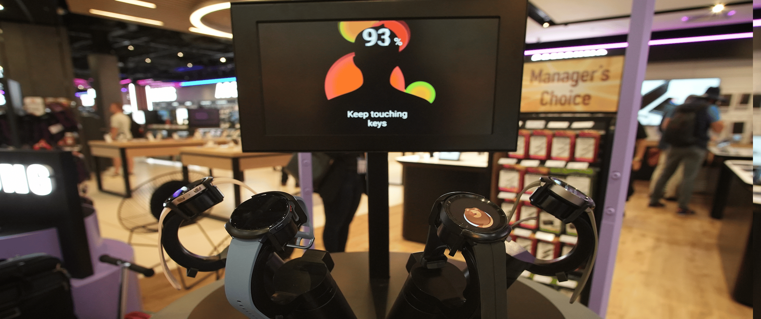 Using lift-and-learn technology, travelers can experience the features of the Galaxy Watch 5 by listening to their bodies while the smartwatch measures their blood oxygen levels.