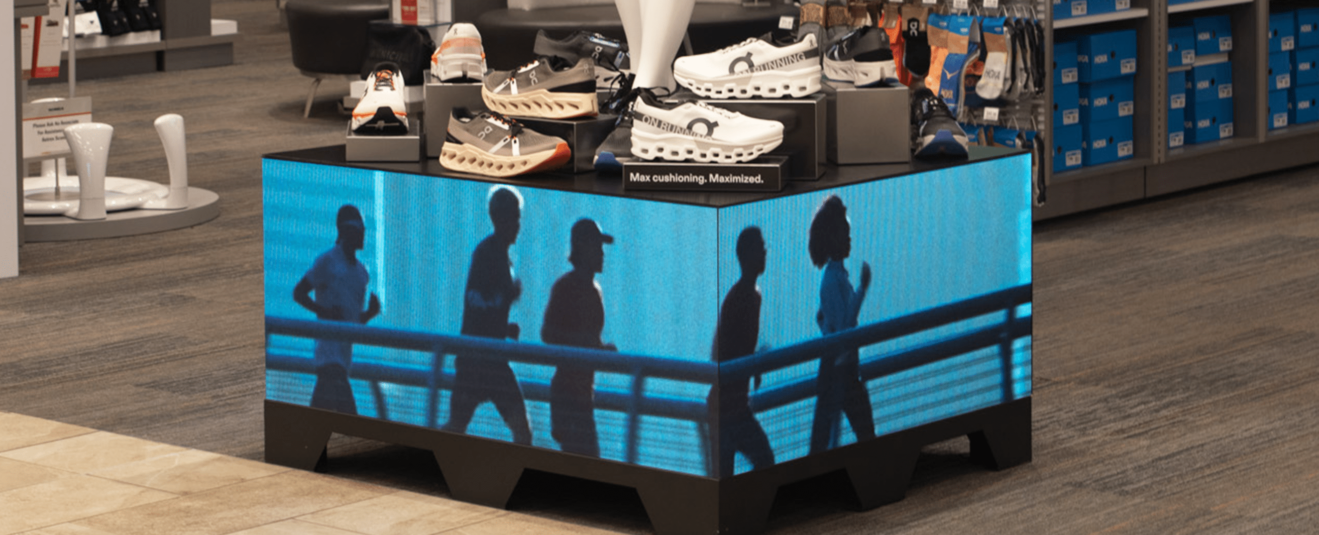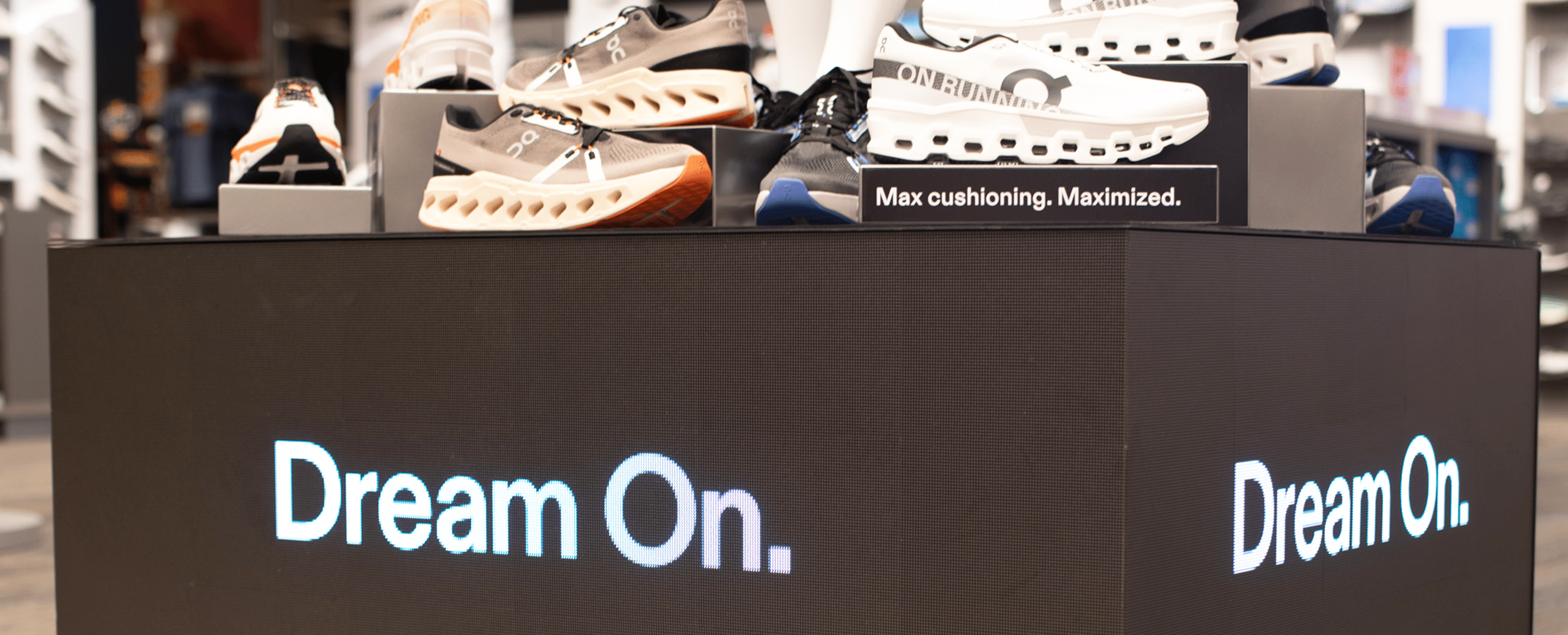 Scheels, known for its engaging retail experiences, sought to cut through the noise at eye level along the power aisle. With this goal in mind, Outform introduced a Digital Pallet onto the floor of Scheels in The Colony, Texas — the retailer’s largest location in the country. This strategic move aimed to elevate the visibility and engagement of seasonal footwear, a key focus area for the retailer.