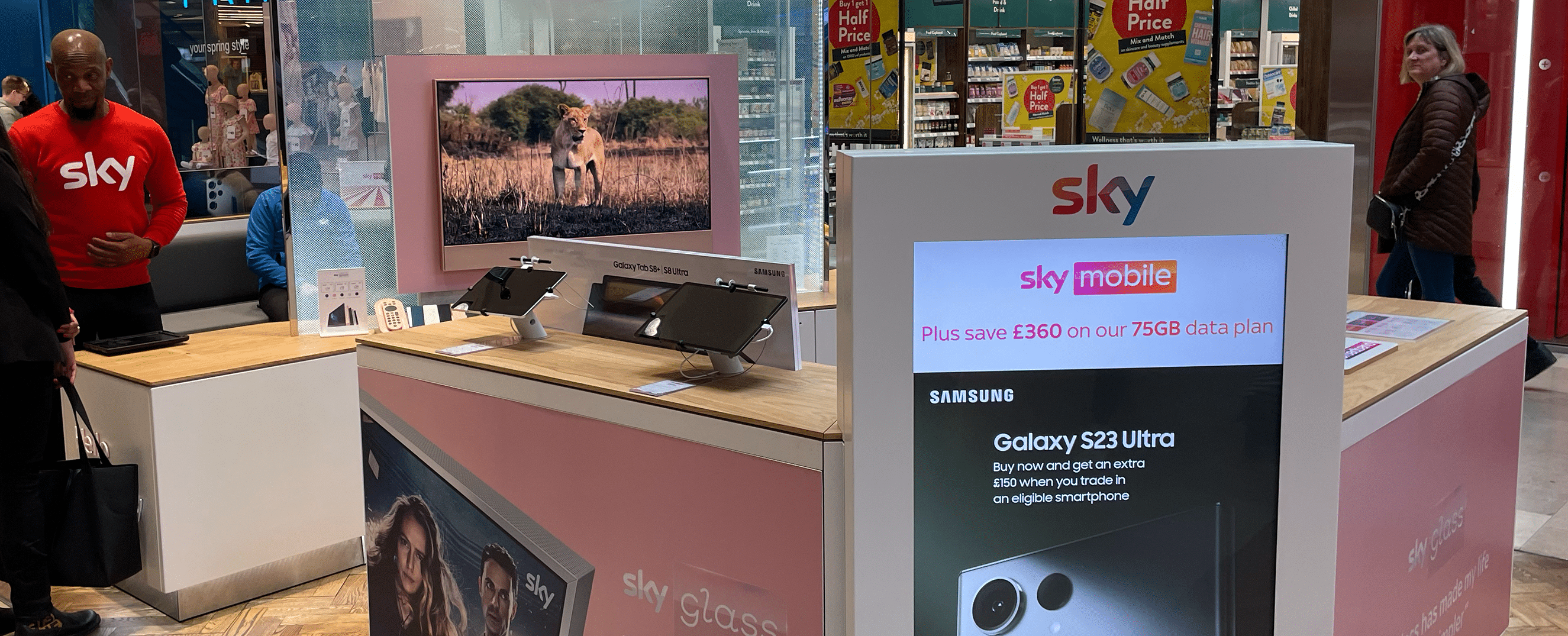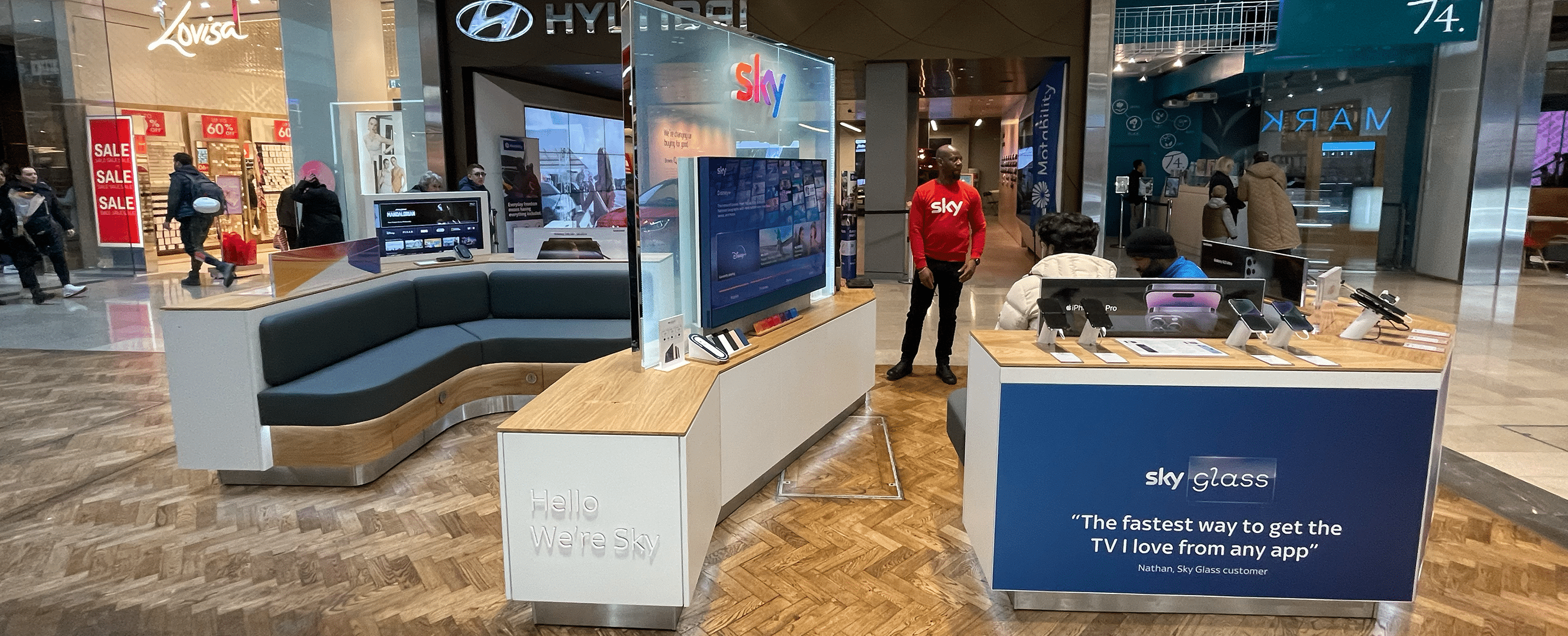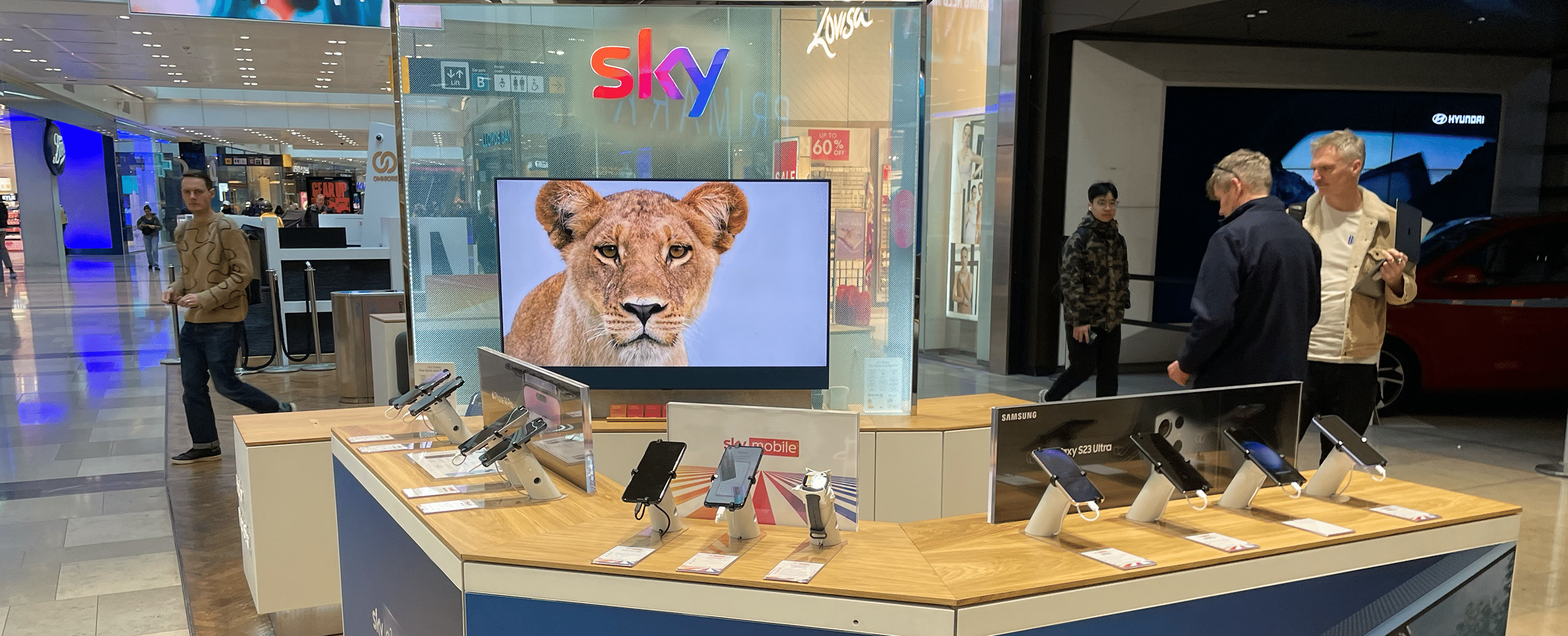 As one of Europe’s leading media and entertainment companies, Sky appointed Outform with the task of increasing brand visibility and product engagement through their flagship mid-mall retail footprints.