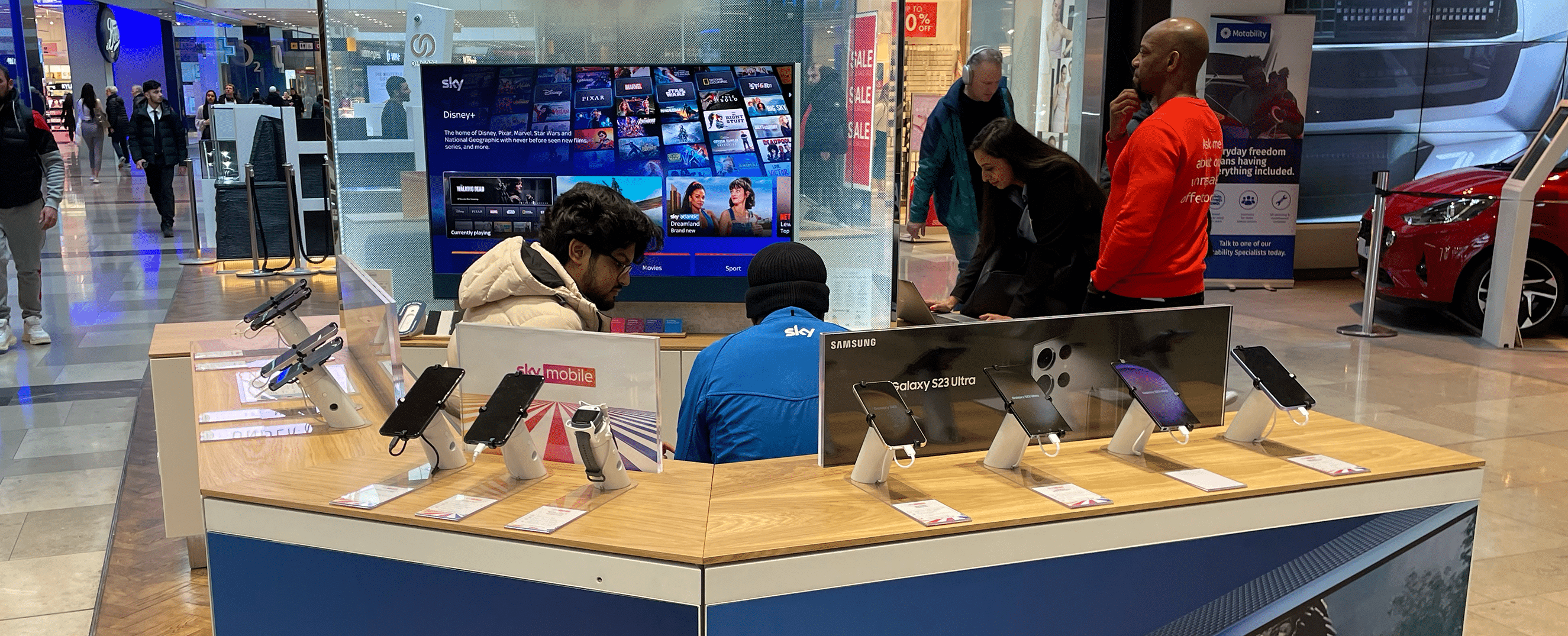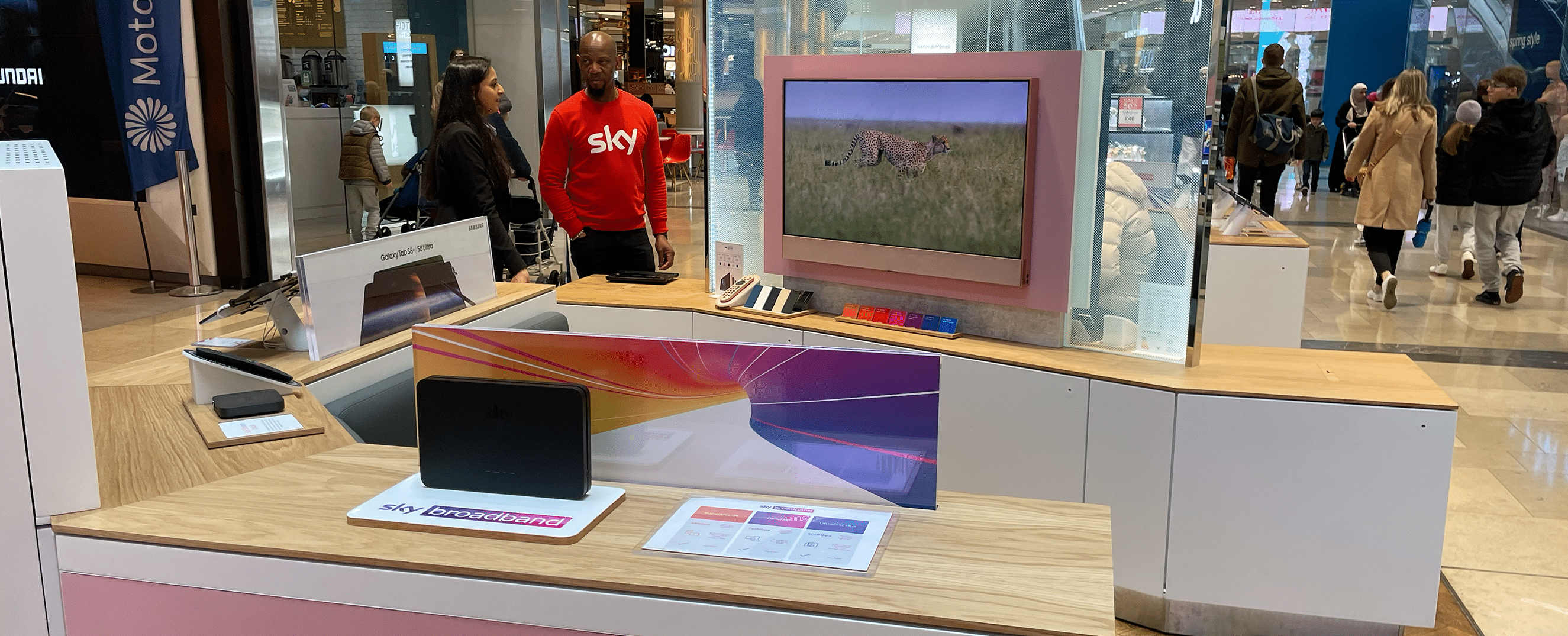 The Next Gen+ Hub embodies this solution. Located in London’s Westfield Stratford City, one of Sky’s highest performing locations, this innovative concept empowers shoppers to fully immerse themselves in Sky’s expansive product range. With shopper experience at its heart, this solution guides customers through the different options including TV, Broadband, Mobile, and Smart Home Insurance.